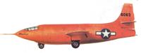 飛行員在升空之前.已經(jīng)在X-l的座艙內(nèi)坐好。轟炸機(jī)飛到高空后,象投炸彈那樣,把X-l投放開去。X-l離開轟炸機(jī)后,在滑翔飛行中,再開動自己的火箭發(fā)動機(jī)加速飛行。X-1進(jìn)行第一次空中投放試驗,是在1946年1月19日;而首次在空中開動其火箭動力試飛,則要等到當(dāng)年12月9日才進(jìn)行,使用的是X-l的2號原型機(jī)。