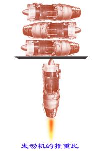 噴氣發(fā)動機的推力和發(fā)動機的凈重之比,稱為發(fā)動機的推重比。 推重比是一個綜合性的性能指標,它不僅體現(xiàn)噴氣發(fā)動機在氣動熱力循環(huán)方面的水平,也體現(xiàn)了結構方面的設計水平。目前,高性能的加力式渦輪風扇發(fā)動機的推重比可達8~10。