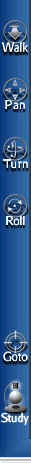 Walk按鈕:漫步按鈕,這是缺省的用戶觀察方式,使用漫步方式時,在窗口中按下鼠標左鍵拖動,可以進行觀察者前進、后退、左右 轉(zhuǎn)等觀察行為。