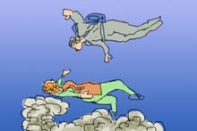 一名跳傘運動員從飛機機艙中跳出后,發(fā)現(xiàn)降落傘打不開,在嘗試了各種方法無效后,他無可奈何地向地面墜下去。墜到兩千英尺高度時,他看到從地面飛上來的一位家庭主婦,忙問道:“您對降落傘有研究嗎?”,驚慌失措的家庭主婦回答道:“沒有。喂,您能修理煤氣罐嗎?”。