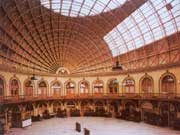 框架結(jié)構(gòu)最初在美國得到發(fā)展,其主要特點是以生鐵框架代替承重墻,外墻不再擔負承重的使命,從而使外墻立面得到了解放。1858--1868年建造的巴黎圣日內(nèi)維夫圖書館,是初期生鐵框架形式的代表。此外還有:英國利茲貨幣交易所、倫敦老火車站、米蘭埃曼爾美術(shù)館、利物浦議院、倫敦老天鵝院、耶魯大學法爾南廳等。美國1850-1880年間“生鐵時代”建造的大量商店、倉庫和政府大廈多應(yīng)用生鐵構(gòu)件門面或框架,如圣路易斯市的河岸上就聚集有500座以上這種生鐵結(jié)構(gòu)的建筑,在立面上以生鐵梁柱纖細的比例代替了古典建筑沉重穩(wěn)定的印象,但還未完全擺脫古典形式的羈絆。在新結(jié)構(gòu)技術(shù)的條件下,建筑在層數(shù)和高度上都出現(xiàn)了巨大的突破,第一座依照現(xiàn)代鋼框架結(jié)構(gòu)原理建造起來的高層建筑是芝加哥家庭保險公司大廈(1883-1885,William Le Baron Jenney),共十層,它的外形仍然保持著古典的比例。