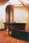 米拉公寓位于街道轉(zhuǎn)角,地面以上共六層(含屋頂層),這座建筑的墻面凸凹不平,屋檐和屋脊有高有低,呈蛇形曲線。建筑物造型仿佛是一座被海水長期浸蝕又經(jīng)風(fēng)化布滿孔洞的巖體,墻體本身也像波濤洶涌的海面,富有動感。米拉公寓的陽臺欄桿由扭曲回繞的鐵條和鐵板構(gòu)成,如同掛在巖體上的一簇簇雜亂的海草。米拉公寓的平面布置也不同一般,墻線曲折彎扭,房間的平面形狀也幾乎全是“離方遁圓”,沒有一處是方正的矩形。公寓屋頂上有六個大尖頂和若干小的突出物體,其造型有的似神話中的怪曾,有的如螺旋體,有的如無名的花蕾、如骷髏、如天外來客……。