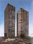 密斯·范·德·羅的代表作品有西班牙巴塞羅那博覽會德國館,在這里實現(xiàn)了他的技術與文化融合的理想,這是一件現(xiàn)代主義建筑的精品。他的代表作品還有:美國伊利諾工學院建筑及設計系館(1956)、和紐約西格拉姆大廈(1956-1958,與菲利普·約翰遜合作)、朗格住宅、湖濱公寓西柏林新國家美術館等,其中紐約西格拉姆大廈堪稱國際式風格的頂峰。