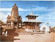 在巴特岡的丟巴廣場上有一座婆羅門教廟宇,高聳的塔很象印度北部的,不過比較簡單,它沒有門廳,方方的神堂四面沒門,平面成十字型,四面一致。