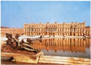 凡爾賽宮原為法王的獵莊,1661年路易十四進行擴建,到路易十五時期才完成,王宮包括宮殿、花園與放射形大道三部分。宮殿南北總長約400米,中央部分供國王與王后起居與工作,南翼為王子、親王與王妃命婦之用,北翼為王權辦公處并有教堂、劇院等等。建筑風格屬古典主義。立面為縱,橫三段處理,上面點綴有許多裝飾與雕像,內(nèi)部裝修極盡奢侈豪華的能事。居中的國王接待廳,即著名的鏡廊,長73米,寬10米,上面的角形拱頂高13米,是富有創(chuàng)造性的大廳。廳內(nèi)側墻上鑲有17面大鏡子,與對面的法國式落地窗和從窗戶引入的花園景色相映成輝。宮前大花園自1667前起由勒諾特設計建造,面積6.7平方公里,縱軸長3公里。園內(nèi)道路、樹木、水池、亭臺、花圃、噴泉等均呈幾何形,有它的主軸、次軸、對景等等,并點綴有各色雕像,成為法國古典園林的杰出代表。三條放射形大道事實上只有一條是通巴黎的,但在觀感上使凡爾賽宮有如是整個巴黎,甚至是整個法國的集中點。