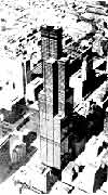 美國芝加哥的一幢辦公樓,SOM建筑設(shè)計(jì)事務(wù)所設(shè)計(jì),1974年建成,高443米,是當(dāng)今世界最高建筑物之一。總建筑面積418000平方米,地上110層,地下3層。底部平面68.7×68.7米,由9個(gè)22.9米見方的正方形組成。在這些正方形的范圍內(nèi)都不另設(shè)支柱,租用者可按需要分隔。整個(gè)大廈平面隨層數(shù)增加而分段收縮。在51層以上切去兩個(gè)對(duì)角正方形,67層以上切去另外兩個(gè)對(duì)角正方形,91層以上又切去三個(gè)正方形,只剩下兩個(gè)正方形到頂。