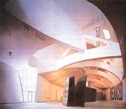 這座建筑物建筑面積達(dá)2.4萬平方米,位于勒維翁河濱,下部有石質(zhì)墻面的較方正的管理用房等,而主要的建筑體量異常彎扭復(fù)雜,那些難以名狀的流動彎曲的體量,內(nèi)部是鋼架,外表覆蓋鈦板,鈦板的總面積達(dá)2.787萬平方米。結(jié)構(gòu)設(shè)計由SOM事務(wù)所承擔(dān)。結(jié)構(gòu)方式同造船相近。