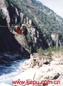 (3)從排龍門巴族鄉(xiāng)沿帕隆藏布下游而下到峽谷大拐彎的頂端扎曲,全程約30公里,徒步兩天,沿帕隆藏布要經(jīng)過六座索橋,懸崖山徑,最后爬上400米高坡到達扎曲,到此已深入到世界最大峽谷的腹心,同時可看到雅江的馬蹄形拐彎和帕隆藏布下游的直角形拐彎,往西可同時看到加拉白壘峰和南迦巴瓦峰。