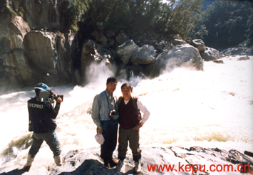 高登義與丹增多吉在絨扎瀑布畔