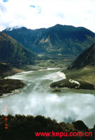 宜淀西北側(cè)是雅江在這里作拐彎入峽的河段。河岸上雄偉地矗立著四座城堡式建筑殘遺,是一處很好的標志建筑物。楊教授帶領(lǐng)大家在這里下車,直奔城堡遺址,并告訴大家這里應(yīng)該是大峽谷的入口處,具體定在哪個點,請關(guān)教授和測量專家去實地勘察。大家情緒很高,10幾位新聞工作者也感到很新鮮,扛著攝像機,掛著照像機緊緊地跟隨著。最后來到古城堡遺址最高處的河岸陡崖上觀察,都感到這里實在是一處具有戰(zhàn)略意義的好場所,難怪古人在這里作碉堡扼守。東側(cè)是山,中間一條臨江的陡坡小路,西側(cè)是雅江峽谷,可謂一夫守關(guān)萬夫莫入。站在高高的陡峭河岸上,視野開闊,往西看,可見寬谷緩流的雅江中游由西東來,奔至眼腳,突然折而往北,轉(zhuǎn)折處兩岸有不少風沙堆積的地形令人瞠目。河水在這里拐彎后一下變狹,水道在左岸的基巖山嘴和右岸的冰磧洪積扇形地之間收縮,流速變急,翻滾著浪花向北奔去,左岸河邊有一縷沙灘地。當南北向奔流的江水在右岸古堡陡崖下奔去大概400-500米左右后,河谷又突然折向東流去。這就是雅江大峽谷的入口風貌,它深深地吸引著我們:在周圍雪山、林海的映襯下,不但地理位置重要,而且自然風光也真是美極了。新聞工作者盡情地施展他們的渾身解數(shù),攝像機、照像機不停地拍攝著。不同專業(yè)的專家們在現(xiàn)場河岸仔細觀察后,取得共識,一致確定在第四古城堡遺址旁的河岸基巖上為大峽谷入口的地理座標點。楊教授站在高高的陡壁巖石上向新聞界(中央電視臺、新華社、人民畫報社等)宣布,世界最大峽谷的進口就在這里。依據(jù)自然地理綜合性的原則:在河谷形態(tài)上,雅江由上中游奔來為寬谷形態(tài),奔來拐彎轉(zhuǎn)折即切入兩側(cè)山嶺成為V形峽谷形態(tài);在河流水性上,上游寬谷中水流平緩,往下游V形峽谷中,水流湍急,變化十分明顯。顯然,河床的坡降在這里也發(fā)生了突然的轉(zhuǎn)折變化。其它自然地理特征的差異,如上游寬谷中水道多彎曲、分散,河道流路往往受控于寬谷兩岸沖出的洪積扇形地,河岸多沙灘和風沙堆積地貌。一旦進入峽谷后,河道多切入峽谷中的臺地,更多的河段是直接切入了基巖,河谷多作直角形的奇特、不協(xié)調(diào)的拐彎轉(zhuǎn)折,峽谷中絕無風沙堆積地貌等等。