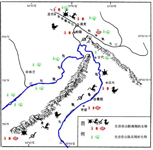 圖6 沿雅魯藏布江水汽通道上生物南北交流分布圖