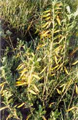小葉錦雞兒是高為40-70厘米的灌木,高者可達(dá)1米。皮灰黃色或黃白色;小枝黃白色至黃褐色,直伸或彎曲。花冠黃色,莢果扁,條形,深紅褐色。花期5-6月,果期8-9月。作為旱生灌木,廣泛地散生于典型草 原上,在植被外貌上,具有明顯的景觀作用,構(gòu)成不同密度的灌叢化草原,這也是蒙古高原上草原植被的一大特征。小葉錦雞兒為良好飼用植物。綿羊、山羊及駱駝均樂意采食其嫩枝,尤喜于春末食用其花。牧民認(rèn)為它的花營養(yǎng)價(jià)值高,有抓膘作用,能使經(jīng)冬后的痩弱牲畜迅速肥壯起來。