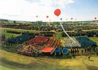那達(dá)慕活動,一般選擇草原黃金季節(jié)七、八月。那時,牧草豐盛,牛羊肥壯。草原也似乎浸泡在鮮花綠草的戀情里。成千上萬的蒙古族牧民,穿上節(jié)日的盛裝,不顧旅途遙遠(yuǎn),男女老少或騎馬或乘車,或趕著轆轆車,從四面八方,云集到綠海如茵的草原上。平日寧靜的草原,彩旗飄揚,人流縱橫,牛羊歡叫、牧馬嘶鳴,呈現(xiàn)出一派繁榮的景象。假如有機會參加這一盛大的節(jié)日的活動,親身感受那節(jié)日的氣氛,該是何等有意思的一件事。