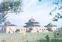 成吉思汗陵現位于內蒙古大草原伊克昭盟境內。占地面積長寬各15公里,面積達225 平方公里。一條清清的涓涓細流逶迤而過,小河源頭隆起的高坡,生長著茂密的綠色的叢叢沙蒿,與明黃色的宮殿、綠色的草地、湛蘭的天幕融合在一起,構成一幅寧靜、美麗的畫卷。一代民族英雄靜靜的躺在他熱愛的廣闊的草原之中。熱愛草原旅游的人們,有機會可以去憑吊一下成吉思汗的陵寢,追思一下成吉思汗一生的英雄業(yè)跡。