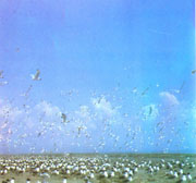 由于青藏高原氣候寒冷、干燥,湖水補(bǔ)給不豐而蒸發(fā)量大,使得極大多數(shù)以高山冰雪融水為補(bǔ)給水源的湖泊,即使是面積較大的湖泊亦出現(xiàn)了明顯的干化和湖面退縮現(xiàn)象。許多地質(zhì)歷史時(shí)期的一些大型湖泊已被分解為若干子湖,有的已演化成鹽湖或干鹽湖。我們從現(xiàn)代衛(wèi)星像片上所看到的在湖泊周圍呈同心狀分布的圖形即是古湖岸線的遺跡,它說(shuō)明了近代青藏高原上的湖泊仍在萎縮和咸化中。據(jù)調(diào)查,區(qū)內(nèi)大約有20-30%以上的湖泊已發(fā)展到鹽湖和干鹽湖階段。本區(qū)雖然大多數(shù)湖泊為內(nèi)陸鹽水湖,但也有外流的淡水湖泊,像青海南部寬闊平坦的構(gòu)造盆地內(nèi)發(fā)育的著名的鄂陵湖和扎陵湖及一些小湖,它們是我們母親河──黃河的上游,也是青藏高原上面積較大的淡水湖。此外,在藏東南地區(qū)亦發(fā)育有少數(shù)外流淡水湖泊,如瑪旁雍錯(cuò)和扎昂錯(cuò)等。
