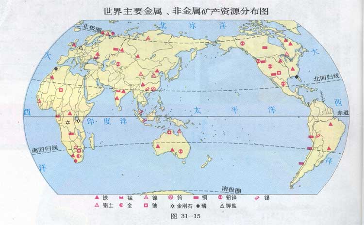 附:世界礦產(chǎn)主要金屬、非金屬礦產(chǎn)資源分布圖;
