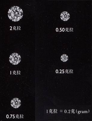 克拉與鉆石大小之相約對(duì)照
