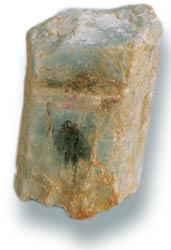綠柱石的化學(xué)組成為Be3Al2[Si6O18],晶體屬六方晶系的環(huán)狀結(jié)構(gòu)硅酸鹽礦物。晶體常呈六方柱,柱面上有縱紋,集合體有時(shí)呈晶簇或針狀,有時(shí)可形成偉晶,長可達(dá)5米,重達(dá)18噸。多為淺綠色,成分中富含銫時(shí),呈粉紅色,稱為玫瑰綠柱石;含鉻時(shí),呈鮮艷的翠綠色,稱為祖母;含二價(jià)鐵時(shí),呈淡藍(lán)色,稱為海藍(lán)寶石;含三價(jià)鐵時(shí),呈黃色,稱為黃綠寶石。玻璃光澤,解理不完全。摩氏硬度7.5-8,比重2.6-2.9。