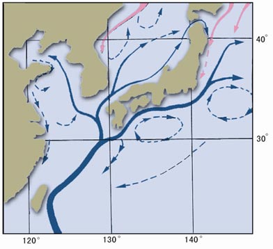 黑潮主流在東中國海的三個主要分支