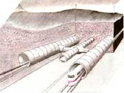 現(xiàn)代海底隧道的開鑿,使用巨型掘巖鉆機,從兩端同時掘進。掘巖機的鏟頭堅硬而鋒利,無堅不摧。鉆孔直徑與隧道設(shè)計直徑相當,每掘進數(shù)10厘米,立即加工隧道內(nèi)壁,一氣呵成。為保證兩端掘進走向的正確,采用激光導向。在海底地質(zhì)復(fù)雜,無法這樣掘進的情況下,就采用預(yù)制鋼筋水泥隧道,沉埋固定在海底的方法。