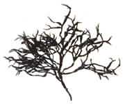 藻體黑褐色, 革質(zhì),直立,叢生,高6~12厘米,直徑l~1.5毫米;復(fù)叉狀分枝,枝圓柱狀,稍有棱角或扭曲,枝頂扁圓。生長(zhǎng)在中潮帶巖石上。生長(zhǎng)盛期6~9月。產(chǎn)于嵊山、中街山、普陀山、漁山、韭山、大陳、洞頭、南虎和大漁。分布于我國(guó)東南沿海。本種系北太平洋西部特有的亞熱"帶性海藻?晒┦秤煤退幱。