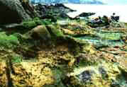 藻體藍綠色,絲狀,叢生似絨毛,粘滑,高0.3~1厘米。生長在高、中潮帶巖石上。產(chǎn)于深山、漁山、南麂?晒┦秤。