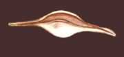 殼紡 錘形,前后兩端延伸呈劍狀,中部卵圓形。殼呈肉色,富有光澤。殼面具環(huán)行溝紋,在兩端劍狀突起部的環(huán)紋較明顯。殼口狹長,下方稍寬。外唇較厚,弧形;內(nèi)唇薄,中部膨圓。前、后溝極長,呈半管狀,尖端部稍向背方翹起。