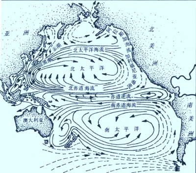 太平洋表層海流分布示意圖