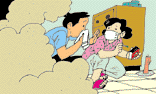 趴在地上,用濕毛巾捂住口、鼻。地震停止后向安全地方轉(zhuǎn)移,要匍匐、逆風(fēng)而進。