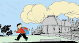 遇到化工廠著火,毒氣泄漏,不要向順風(fēng)方向跑,要盡量繞到上風(fēng)方向去,并盡量用濕毛巾捂住口、鼻。
