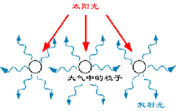當我們避開太陽朝天空張望時,看到的是蔚藍的天空,這就是說,在那個方向的天空有光線射入我們的眼簾,從太陽發(fā)射過來的光線,在天空的某個地方改變了方向,不然的話,我們所能看到的一切,就只不過是星際空間的黑暗,或者是來自某個遙遠星辰的亮光。原來,當光線穿過地球周圍的大氣時,它的一些能量就向四面八方反射,這樣的過程就是散射。