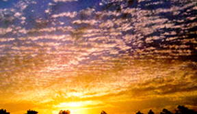 (2) 云量:云量多少,全憑目測(cè)云塊占據(jù)天空的面積來(lái)估計(jì)。因?yàn)槭悄繙y(cè),當(dāng)然并不十分準(zhǔn)確,但也沒(méi)有更好的辦法,全世界的氣象站至今還是用這種目測(cè)方法估計(jì)云量。天氣預(yù)報(bào)廣播中的晴、少云、多云和陰,就是根據(jù)云量的多少劃分的。通常將整個(gè)天空劃分為10等份,碧空無(wú)云或被云遮蔽不到0.5份時(shí),云量為“0”;云遮蓋天空一半時(shí),云量為“5”。云量多時(shí),應(yīng)估計(jì)露出的青天,再推算出云量。云量少時(shí),則直接估計(jì)云所遮蔽天空的份數(shù),如云塊占全部天空的1/10時(shí),云量為“1”;云塊占天空2/10時(shí),云量為“3”,余類推。天空無(wú)云,或者雖有零星云層,但云量不到2成時(shí)稱為晴;低云量在8成以上稱為陰;中、低云的云量為1-3,高云的云量為4-5時(shí),稱為少云;中、低云的云量為4-7,高云的云量為6-10時(shí),稱為多云。一般說(shuō)來(lái),當(dāng)天空被云掩蔽,顏色發(fā)白,地上東西顯得明亮?xí)r,這種云較高。相反,云色呈灰或灰黑色,顯得陰沉,這種云則較低。移動(dòng)慢的云較高,移動(dòng)快的云較低。