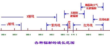 電磁波是由不同波長的波組成的合成波。它的波長范圍從10E-10微米(1微米=10E-4厘米)的宇宙線到波長達(dá)幾公里的無線電波。Υ射線、X射線、紫外線、可見光、紅外線,超短波和長波無線電波都屬于電磁波的范圍。肉眼看得見的是電磁波中很短的一段,從0.4-0.76微米這部分稱為可見光。可見光經(jīng)三棱鏡分光后,成為一條由紅、橙、黃、綠、青、藍(lán)、紫七種顏色組成的光帶,這光帶稱為光譜。其中紅光波長最長,紫光波長最短,其它各色光的波長則依次介于其間。波長長于紅光的(>0.76微米)有紅外線有無線電波;波長短于紫色光的(<0.4微米)有紫外線,Υ射線、X射線等。這些輻射雖然肉眼看不見,但可用儀器測出。