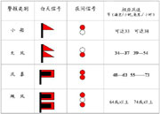 。5)國際風(fēng)暴信號:國際間的風(fēng)暴信號,是由世界氣象組織規(guī)定的,有些國際性通航的港口,如我國臺灣省的基隆、高雄及花蓮等已采用。