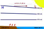 海風和陸風消失的時間,也正是從海風轉(zhuǎn)為陸風(晚上9-10時)或從陸風轉(zhuǎn)為海風(上午9-10時)的過渡時間。