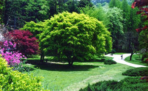 廬山植物園占地近300公頃,引種栽培植物3400余種,以松柏和杜鵑為主要特色。全園建有松柏區(qū)、國際友誼杜鵑園、溫室區(qū)、草花區(qū)、樹木園、巖石園、獼猴桃園、藥圃、茶園等9個不同類型的專類園和展覽區(qū)。其中樹木園收集國內(nèi)外杜鵑300余種,王月花季,杜鵑盛開,如花似錦。馳名中外的廬山云霧茶,香飄云霧之外。素有“寸步必有藥”的廬山,山地藥用植物資源極為豐富。這里的藥圃收集栽種300多種藥用植物。松柏區(qū)生長著裸子植物260余種,南北松杉競秀,東西柏檜崢嶸,其中,有被譽為“活化石”的水杉,中國特產(chǎn)的金錢松,以及國內(nèi)外其他名貴樹種。標本室收存臘葉標本17萬余號,圖書館藏書6萬余冊。