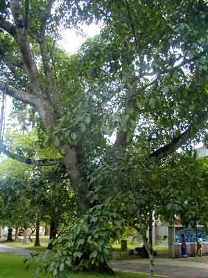 ?拼髥棠靖唛诺臍馍椭еμ貏e強(qiáng),所以它不僅會絞殺寄主植物,而且很容易形成獨(dú)木成林,在植物園里,科技人員成功地采用人工誘導(dǎo)的方法使之長出氣生根,長成支柱根,以更快更好地形成獨(dú)木成林景觀,即:在大枝椏的陰面砍出缺口,涂以生根液,以營養(yǎng)土裹之,待生出氣生幼根后,以裝滿腐殖土的長竹筒接到地面,氣生根便會很快生長,并插入地表,逐漸長成支柱根。