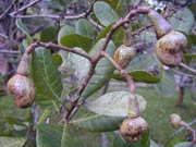 腰果比較耐旱,每年可開三次花,結(jié)三次果,花為黃色,并有淡紅色條紋。對于不懂植物學(xué)的人來說,腰果給人的感覺很奇怪,它的種子長在果子的外面,接在下端。實際上,我們平常當(dāng)作水果吃的那一部分并不是真正的果子,而是果托,也叫作假果,而真正的果子是被我們叫作種子的那一部分。腰果的形狀有點象梨果,但體形小得多,生時綠色,成熟時逐漸變紅,吃起來甘甜多汁,略有澀味,營養(yǎng)很豐富,經(jīng)濟價值也很高。