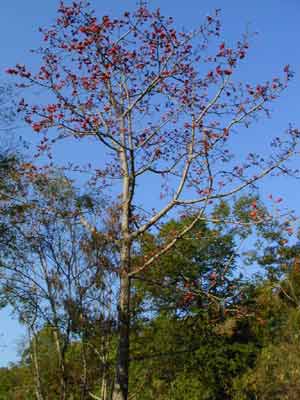 從古至今,西雙版納的傣族對(duì)木棉有著巧妙而充分的利用:在漢文古籍中曾多次提到傣族織錦,取材于木棉的果絮,稱為“桐錦”,聞名中原;用木棉的花序或纖維作枕頭、床褥的填充料,十分柔軟舒適;在餐桌上,用木棉花瓣烹制而成的菜肴也時(shí)有出現(xiàn);此外,在傣族情歌中,少女們常把自己心愛的小伙子夸作高大的木棉樹。