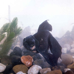 虎頭龍睛早在五十年代初就已出現(xiàn),而黑色者少,于六十年代初選育成功。經(jīng)過不斷篩選,體色濃黑,肉瘤厚實(shí)。近年,黑色魚備受鑒賞家的垂青。
