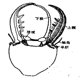 脈翅目幼蟲(蚜獅、蟻獅)具有捕食性的刺吸式口器,簡稱捕吸式口器,其特點(diǎn)是上顎和下顎從兩側(cè)伸出頭前,外形似1對鐮刀。這類口器由左、右的上下顎分別合成刺吸構(gòu)造,因而常被叫做雙刺吸式口器(見左圖)。