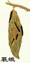蓑蛾的幼蟲吐絲織成各種形狀的蓑囊,囊上粘附斷枝、殘葉、土粒等,幼蟲棲息其中。行動時,將頭、胸伸出,負囊移動。老熟幼蟲將囊用絲懸掛在植物上,在囊內(nèi)花蛹。雌蛾無翅,終生棲息在蓑囊內(nèi)。雄蛾羽化后從囊的下端飛出,雌蛾羽化后仍在囊內(nèi),伸出頭、胸,等待雄蛾飛來交尾并產(chǎn)卵在囊內(nèi)。幼蟲危害果樹、林木、谷類作物和蔬菜。