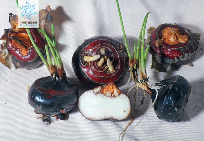 球莖,變態(tài)部分膨大成球形、扁圓形或長(zhǎng)圓形,有明顯的節(jié)和節(jié)間,有較大的頂芽;荸薺、慈菇、芋的變態(tài)莖都是球莖。