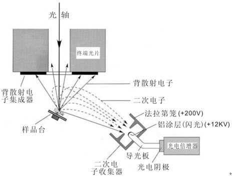 信號(hào)收集及顯示系統(tǒng)的作用是檢測(cè)樣品在入射電子作用下產(chǎn)生的物理信號(hào),然后經(jīng)視頻放大作為顯像系統(tǒng)的調(diào)制信號(hào)。普遍使用的是電子檢測(cè)器,它由閃爍體、光導(dǎo)管和光電倍增器組成。