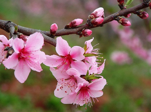最近熱播的《三生三世十里桃花》,除了劇中男女唯美曲折的愛情,最吸引人的莫過于折顏那十里桃林了。因為陶淵明的《桃花源記》,桃林自古就成為理想世界的代表。而原產(chǎn)于中國的桃花更是從古至今文人歌頌的對象,“桃之夭夭,灼灼其華”,淡粉色的花朵,明媚嬌艷。那么如何在萬花叢中將那朵朵桃花區(qū)分開來呢?桃花盛開的時候,一般會長出新葉,呈現(xiàn)花葉同出的狀態(tài),另外,桃花一般是單生花,即一朵花單生在小枝上。沒有花柄或者花柄極短。
