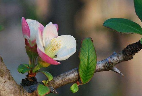 《瑣碎錄》曾言:“櫻桃接貼梗海棠者,則成垂絲海棠;梨樹接貼梗者,則成西府。”可見,上面兩類國色天香的海棠中均有貼梗海棠的基因。但相對于垂絲海棠與西府海棠的粉嫩嬌俏,貼梗海棠有自己獨特的魅力。