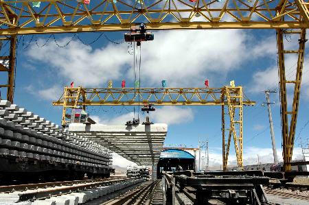 承擔(dān)青藏鐵路重要鋪架任務(wù)的中鐵一局調(diào)集專家,日前對(duì)國產(chǎn)鋪軌架橋機(jī)械和內(nèi)燃機(jī)車進(jìn)行科技改造取得成功,其科研成果填補(bǔ)了國內(nèi)高原鋪架技術(shù)上的空白,從而為青藏鐵路順利鋪軌提供了科學(xué)保障。
