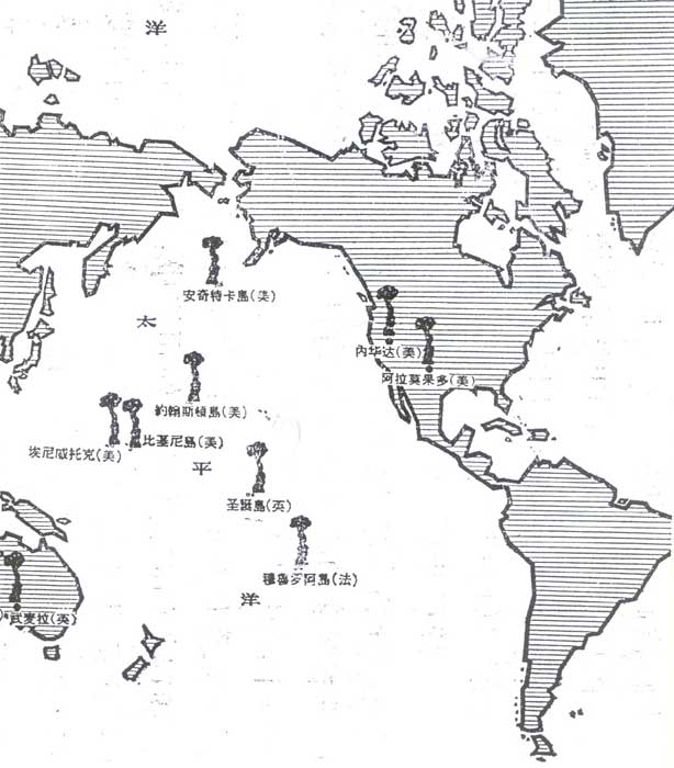 美國從1946年到1958年在馬紹爾群島共進行了60多次原子彈和氫彈的試驗爆炸。規(guī)模最大的一次試爆是在比基尼島進行的。在這一段時間里,馬紹爾群島的比基尼等島上的居民,由于島上受到嚴重的放射性污染被迫遷居了。