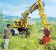 目前,在我國(guó)伐根清理中應(yīng)用的各種方式、方法都存在著勞動(dòng)強(qiáng)度大,作業(yè)安全性差,作業(yè)效率、經(jīng)濟(jì)效益低、環(huán)境生態(tài)效益差等問(wèn)題。國(guó)外的伐根清理機(jī)械共同特點(diǎn)是功率大但價(jià)格昂貴,國(guó)內(nèi)無(wú)法引進(jìn)推廣。為了解決這個(gè)問(wèn)題,針對(duì)國(guó)內(nèi)外伐根清根機(jī)械的情況,結(jié)合我國(guó)的國(guó)情和林情,東北林業(yè)大學(xué)研制了一種先進(jìn)、經(jīng)濟(jì)適用、效率高、對(duì)地表破壞程度小、伐根收集率高、清除伐根程度符合森林更新要求、對(duì)環(huán)境沒(méi)有污染的智能型伐根清理機(jī)器人。使用智能伐根清理機(jī)器人,在一個(gè)?课恢茫辞謇碇?chē)霃?m范圍內(nèi)的伐根,是人工挖根的50多倍。同時(shí)地表坑徑小利于造林,減少了采伐跡地水土流失,減輕了勞動(dòng)程度,保證安全作業(yè),有顯著經(jīng)濟(jì)效益、生態(tài)效益和社會(huì)效益。