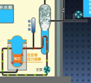 第二回路上方有一個大水箱,叫做“事故冷卻水箱”,其在重力的作用下能長時間連續(xù)流下,冷卻第一回路的水。